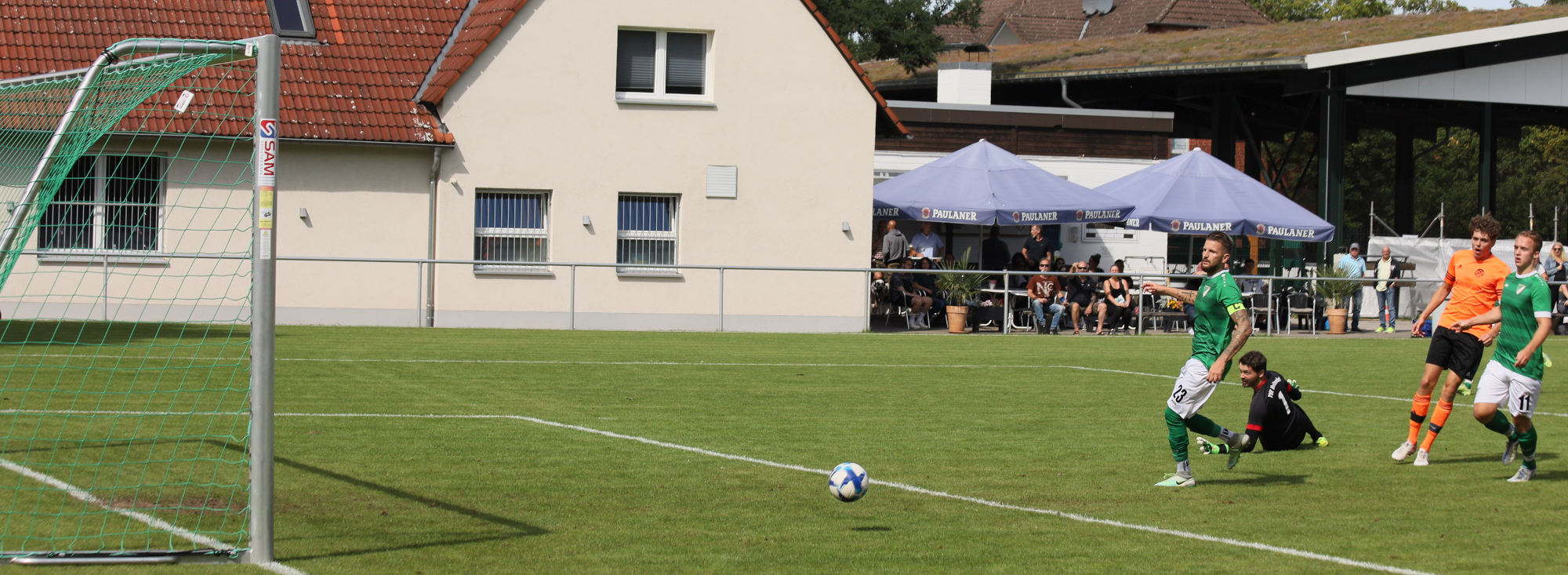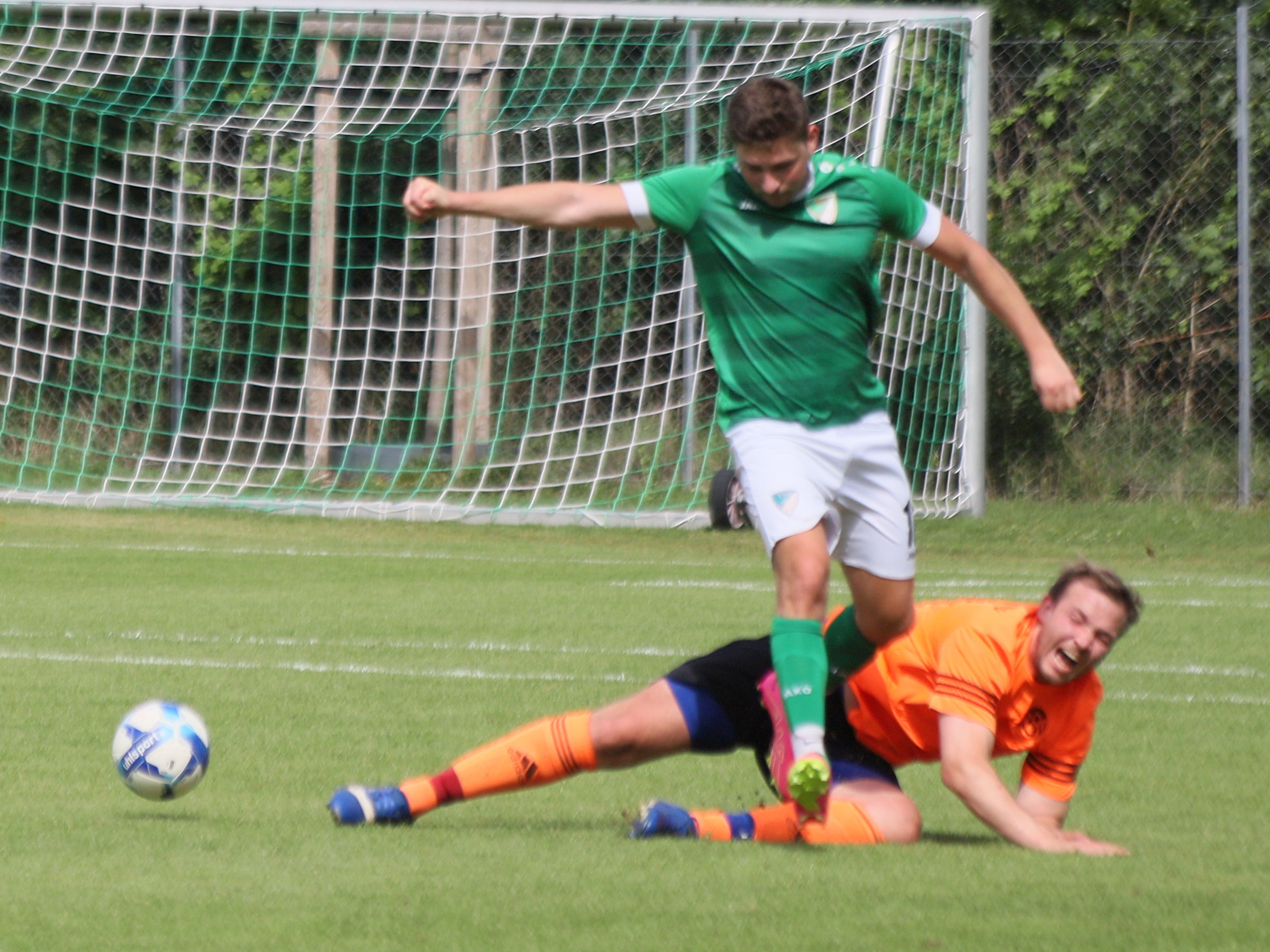 Die Antwort ließ jedoch nicht lange auf sich warten: In der 58. Minute erreichte ein weit geschlagener Pass von Kalle den aufmerksamen Joe, der mit einem sehenswerten Lupfer aus 25 Meter Entfernung den alten Abstand wieder herstellen konnte.