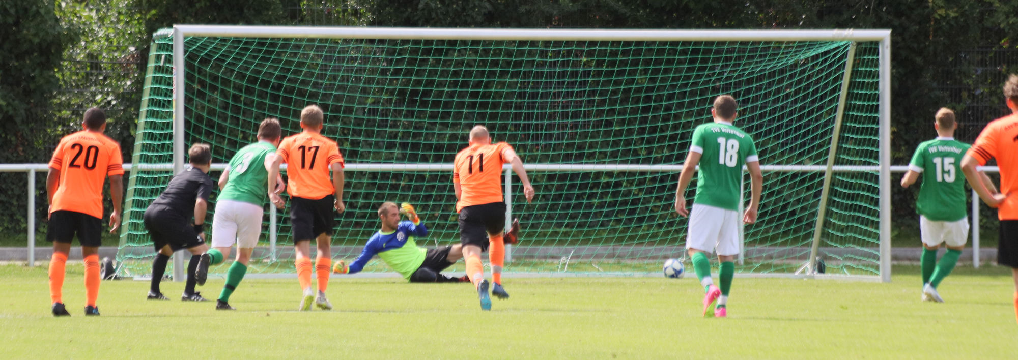 Acht Minuten nach Wiederanpfiff zeigte der Schiedsrichter auf den berühmten Punkt. Fathi Mohammed hatte zuvor seinen Gegenspieler regelwidrig zu Fall gebracht. Jonah Behnke ließ es sich nicht nehmen und schob zum 1:1 für seinen Klub ein.