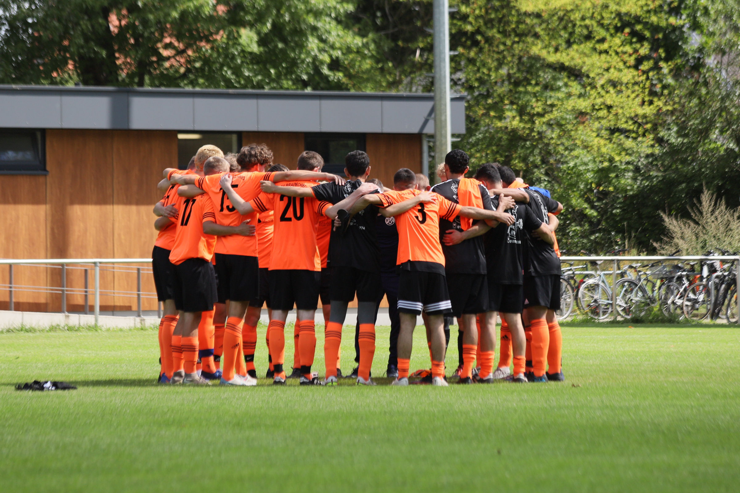 Das Team des RSV und ihr Trainer bei der Sofortanalyse nach dem Abpfiff.