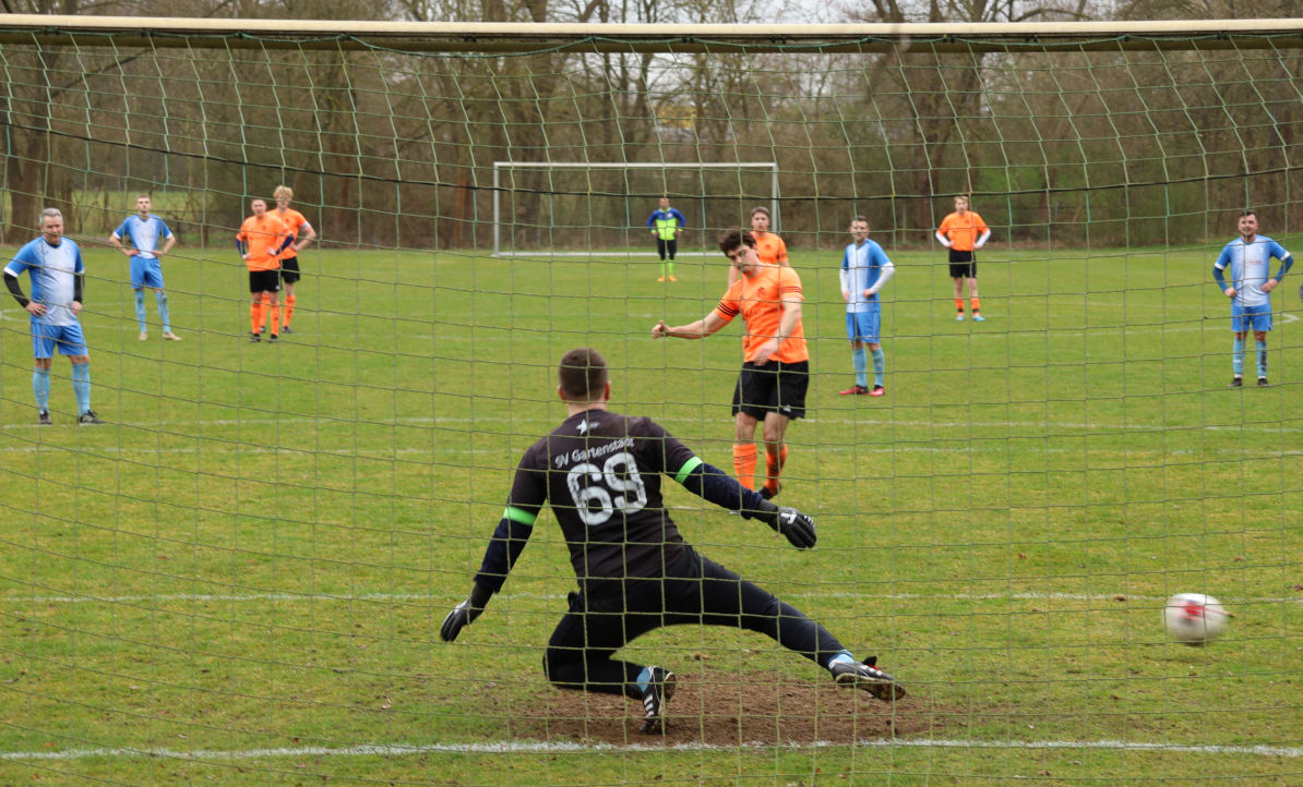 Johannes trifft per Strafstoß zum 3:0. Es war sein zweiter Treffer von insgesamt vier Toren an diesem naßkalten Sonntagmorgen.